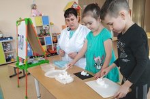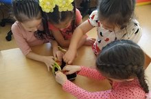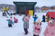 Зурлар төркемендә "Туган якта кыш" дигән темага танып-белү эшчәнлеге узды. Эшчәнлек барышында кыш билгеләре, ел фасыллары, кышкы табигатькә хас билгеләр турындагы белемнәрен ныгыттылар. Тәҗрибә ярдәмендә карның һәм суның үзлекләре белән таныштылар.