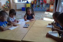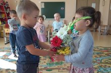Театр, как известно, любят и дети, и взрослые. Его возможности многообразны, а сила воздействия велика. Воспитанникам старшей группы «Колобок» очень полюбились театрализованные игры. Это волшебный мир, в котором малыши радуются, играя с пальчиковыми, конусными, перчаточными куклами. Дети учатся согласовывать свои действия с партнерами, смотреть на себя со стороны, строить взаимодействие и общение друг с другом. Ребята с удовольствием обыгрывают знакомые сказки. Устраивают театрализованные представления друг для друга. Театрализованные игры способствуют всестороннему развитию детей: развивается речь, память, целеустремленность, усидчивость. (воспитатели: Абдуллина Г.М., Низамиева Ф.С.)