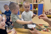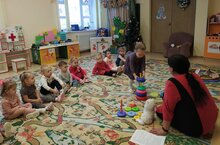 Бүген икенче кече яшьтәгеләр төркемендә сөйләм үстерү эшчәнлеге узды. Кунакка килгән Йомшаккай белән пирамидалаарны дөрес итеп җыйдылар, песи белән уен уйнадылар. Пирамида җыйганда, алар предметларның зурлыгын, төсен белдерә торган сүзләр ярдәмендә сүз байлыгын арттырдылар.