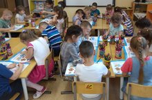 Балаларны татар милли бизәкләре белән таныштыруны дәвам итеп, уртанчылар төркемендә рәсем эшчәнлегендә алъяпкычка бизәкләр төшерделәр. Алъяпкыч бизәлешендә татар милли бизәкләрен кулландылар. Матур бизәкле алъяпкыч кияргә теләгән Айсылуга ярдәм итттеләр.