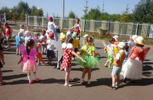 Сегодняшний день мы посвятили бабочкам. Все наши детки оделись в яркие платья и юбки, нарядились бабочками. Родители постарались на славу, и бантики сделали и юбочки и крылышки... Праздник начался необычно: на клумбе у детского сада на одном из цветов дети находят необыкновенную сказочную бабочку. Дети сразу определили, что она волшебная и сегодня прилетела неслучайно. После этого дети выполняли интересные задания, пели песни, станцевали танец бабочек.