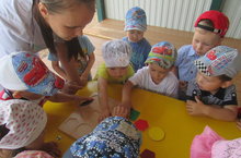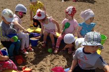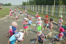 Икенче иң кечкенәләр төркеме балалары бик яратып саф һавада уйныйлар. Бүген алар тәрбияче Исламова Раилә Раилевна белән урамга чыгып комлыкта төрле фигуралар ясадылар. Башка бармак уеннары кебек үк, ком белән уйнау сабыйның вак моторика үсешенә ярдәм итә.