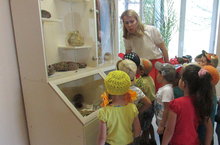 Атна дәвамында «Экологик проектлар» (танып - белу, экологик үсеш өлкәсе) эшләү максатыннан һәм «Матурлык - тирә-юньдә» (эстетик үсеш) кысаларында балалар табигый материаллардан рәсемнәр, кул эшләре ясадылар. Мәсәлән бүген, уртанчылар-зурлар төркеме балалары саф һавада уен вакытында чәчәкләр, үләннәр, төрле матур ташлар һәм ком җыеп алып керделәр һәм шул табигый материаллардан "Күл буенда" дип исемләнгән панно ясадылар.