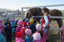 Бүген, икенче кечкенәләр һәм уртанчылар-мәктәпкә әзерлек төркеме балалары бик дулкынландыргыч мизгелләр кичерделәр, чөнки без Саба ипподромында булып, чабышкы атларны күзәттек. Атлар барысы да бик зифа һәм матур, аларны тәрбияләүчеләр арасында безнең бакчага йөрүче балаларның әти-әниләре дә бар. Игнатова Кира Николаевна, мәсәлән, ипподромда инструктор булып эшли. Ул һәр атның холкын белеп, аларны бик яратып тәрбияли, шуңа да һәрберсе турында бик кызыклы итеп сөйләде. Бу сәяхәт балаларга бик мавыктыргыч булды, беренчедән алар атлар тормышы белән һәм аларны караучы һөнәре белән таныштылар, үзара дустанә аралашып, бердәмлек хисе тәрбияләнде.