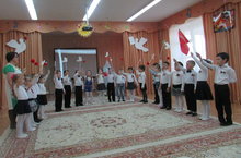 Җиңү көне уңаеннан бакчабызда зур әзерлек эшләре барды. Уртанчылар-мәктәпкә әзерлек төркеме балалары музыка җитәкчесе Мәдинә Шәүкатовна белән чәчәкләр һәм тынычлык билгесе- күгәрченнәр ясадылар.