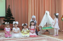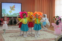 Барыбызгы да таныш булган "Бала белән күбәләк" шигырен Мәликә белән Регина сөйләп, кызлар чәчәкләр һәм күбәләкләр биюен башкардылар.