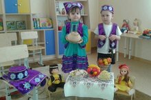 Бу атнада без балалар белән татар милли рухында яшәдек дисәк ялгыш булмас. Балаларда татар милли киемнәренә һәм бизәнү әйберләренә кызыксыну тәрбияләү, халкыбызның күңел җәүһәрләре белән якыннан таныштыру максатыннан атна “Әбиемнең серле сандыгы”темасы астында үтте. Икенче иң кечкенәләр төркеменнән алып, зурларга кадәр бердәм эшчәнлекләрен милли бизәкләргә, традицияләргә таянып, гөреф-гадәтләрне искә алып барырга омтылды. Әбиемнең серле сандыгында сакланучы хәзинәләрне бик зур кызыксыну белән күзәттеләр балалар. Татар милли киемнәренең , бизәнү әйберләренең дөрес әйтелешен кабатладылар, үзләре дә бу әйберләрне киеп карадылар, аулак өйләрдә уйналучы “Йөзек салыш”, “Тукмак тәгәрәтү” кебек уеннар да балалар өчен бик кызыклыбулды.Һәр бала әбиләре һәм дәү әниләре турында сөйләргә тырышты, гаиләдәге традицияләрне дә искә алдылар.Фотода берене кечкенәләр төркеме балалары тәрбиячеләре Багавиева Гөлия Ринатовна белән "Әбидә кунакта" куренешен тасвирлаган вакытлары.
