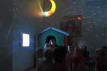 Бакчабызның иң тыныч, игътибарны җәлеп иткән урын ул - сенсор бүлмә.Ул махсус жиһазландырылган уңайлы, курку – мәшәкатьләрне оныттыра, җанга тынычлык ала торган серле бүлмә. Балалар әлеге бүлмәдә яктылык, төсләр, серле тавышлар, тоемлаулар белән үзләренә этәргеч, көч ала. Сенсор бүлмә – балаларның эмоциональ халәтен яхшырта, агрессивлыкны киметә, психик активлыкны арттыра, балаларның күз аллавын үстерә. Шулай ук, бүлмә балаларның иҗатын үстерү, күзаллавын арттыру, курку, борчу -мәшәкатьләрен киметү өчен файдалы. Ут (светотерапия), төс (цветотерапия), тавыш (звукотерапия) терапиялары, тоемлау хисләре балаларга уңай тәэсир итә, кәефләрен күтәрә, бирегә балалар алдарак кыенсынып кына килсәләр, хәзер инде бик теләп керәләр . Бүлмәгә ясле төркеме балалары да һәрдаим кереп йөриләр. Талгын көй астында психологик халәт тудырып, уңай эмоцияләр алып, киеренкелеп тоеп чыгалар. Психолог Айгөл Ракыйфовна һәм тәрбияче Шагиева Ләйлә Раилевна белән сенсор бүлмәсендәге атрибутлар белән уеннар да оештыралар.