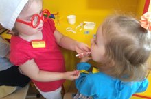 На фото дети первой младшей группы в сюжетно-ролевой игре "Больница" . Воспитатель Исламова Раиля Раилевна