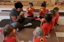 Әлеге сүзләр белән мәктәпкә әзерлек төркеме балалары Көзге бәйрәмне башлап җибәрделәр. Рәхәтләнеп кызыклы уеннар уйнадык, җырлап биеп күңел ачтык әлеге бәйрәмдә.