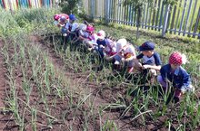 Сегодня у нас витаминный день. Были проведены беседы о витаминах в овощах и фруктах. Труд в природе: прополка и рыхление, а также, вкусный витаминный обед.