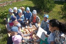 Бүген беренче кечкенәләр төркеме саф һавада әкиятләр тыңлады. Әкият –бала тәрбияләүдә бай материал булып исәпләнә . Сабыйлар вакыйгаларның чынлыгына ышанып, әкият геройлары белән бергә хисләнәләр. Яхшылыкның һәрвакыт җиңеп чыгуына ышаналар. Әкиятләр – халыкыбызның зур мирасы. Шуңа күрә, халык авыз иҗатының бу төрен тормышыбызда күбрәк куллансак иде.