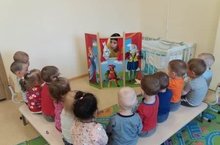 Бүген беренче кечкенәләр төркемендә “Җәнлекләр, хайваннар белән танышу” ны дәвам итеп курчак театры карадылар. Театр сәнгате – бала үсешендә зур роль уйный. Балаларның сөйләм теле камилләшә, игътибарлылык арта, яхшы белән яманны аерырга өйрәнәләр. Әкияти геройларның хис-кичерешләрен үз күңелләре аша үткәреп, матурлыкны, саырлык, кешелеклелек сыйфатларын үзләрендә булдыруны максат итеп куялар.