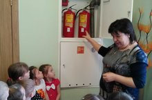 В старшей группе воспитатель М.А.Хуснуллина провела беседу и рассказала о методах пожаротушения.