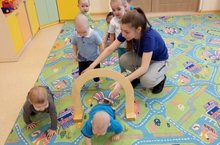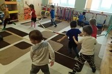 Бүген белән Ләлә Миннерикиповна кечкенәләр төркеме физкультура эшчәнлеге уздырды. Балалар кечкенә туплар белән күнегүләр эшләделәр,дугалардан тезләнеп чыгырга өйрәнделәр.
