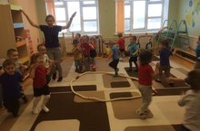Физкультура эшчәнлегендә Алтынбаева Л.М һәр даим кызыклы уеннар белән балаларны күңелен күрә.Яңа төрле уеннар балаларга бик кызыклы һәм алар бик тырышып катнашалар.Бүген дә икенче кечкенәләр төркеме белән Ләлә Миннеракиповна “Птицы и птенчики” дигән тиз хәрәкәтле уеннар уйнадылар.
