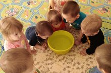 Атналыкның темасы”Су-яшәү чыганагы” дип атала. Шул уңайдан бүген, ягъни 23 мартта, 1 кечкенәләр төркеме Бари Рәхмәтнең “Су” шигырен өйрәнделәр. Алар суны табакка агызып, уенчык балык йөздереп карадылар. Суның чиста булуын, ком салгач, болганчыкка әйләнүен белделәр. Җылы һәм салкын суны тотып карадылар. Кунакка килгән уенчык куяннар белән бит-кулларын юдылар. Балалар тәрбиячеләре артыннан шигырьне кабатлап барып, сусыз яшәп булмавына төшенделәр.