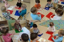 Сөйләм телен үстерү күнекмәләре балаларда кечкенәдән үк алып барылырга тиеш. Шул уңайдан, 1 кечкенәләр төркеме балалары белән, даими рәвештә бармак уеннары уйнатыла. Кул чукларын хәрәкәтләндерү өчен иң яхшы чараларның берсе-камыр белән эшләү. Бу эшчәнлекне балалар бик яраталар. Режим вакытларында тәрбияче белән берлектә шарлар әвәләп тәгәрәтәләр, клиндерләр ясыйлар.