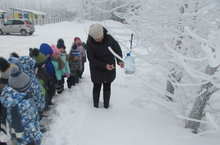 2 нче кечкенәләр торкеме балалары физкультура житәкчесе Айгөл Рәкыйфовна белән кышкы урманга бардылар. Аларны анда куян баласы кунакка чакырды. Балалар урманга торле юллардан бик тиз килеп життеләр, һәм куян баласы белән уен да уйнадылар.