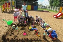 Детям очень нравится играть с песком, сыпать его из одного ведерка в другое, с помощью разноцветных формочек лепить из песка разные фигурки. Такие игры благотворно влияют на психику ребенка и успокаивает их.