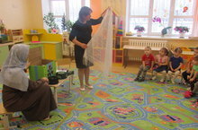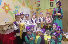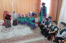 Балаларны татар халкының милли киеме, фольклоры, көнкүреше белән таныштыру максатыннан бүген уртанчылар төркемендә бердәм эшчәнлек милли киемнәргә багышланды. Балалар янына кунакка милли киемнәрдән татар егете һәм кызы килде, ләкин аларның читекләре юк иде. Балалар белән бергәләп тәрбияче Ахметшина А.Г. кунакларга матур читекләр ясап, бизәп бирделәр. Иҗади эштән соң алар бергәләшеп милли уеныбыз "Яулык салышны" уйнадылар, татар "Әпипә" җырына күңел ачтылар.