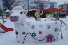 Композиция снежных фигур была приурочена к восьмидесятилетию (22.12.2017г) Э.Успенсого.