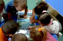 Халилова Сирина Басировна учит своих воспитанников узнавать на картинках значимые места села Шемордан.