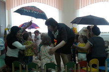 Сегодня воспитатель по физкультуре Рамазанова А.Х. провела открытое занятие в первой младшей группе «Веселая полянка». Особенно ребятам понравилась встреча с лесными зверями, вместе с которыми ребята показали, чему они научились за год на занятиях физкультуры.