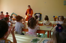 В сегодняшней беседе с детьми о народных поэтах Республики Татарстан - Роберте Миннуллине, Абдулле Алише вспомнили о добрых и веселых стихах и сказках для детей, написанные доступным и в то же время богатым на крылатые выражения, интересные сравнения языком. Рассмотрели книги адресованные детям дошкольного и младшего школьного возраста, а также всем тем, кто хочет вновь окунуться в детство. Посмотрели мультфильмы. Такие мероприятия помогают развитию устойчивого интереса к татарскому языку, поддерживают желание общаться на родном языке. Заложить основы правильного звукопроизношения, интонационной выразительности речи. Прибегать к поступкам положительных и отрицательных героев произведений в игровой деятельности в качестве приобретенного опыта, образца поведения.