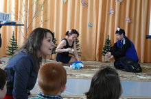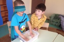 Психолог Эльвина Ильнуровна проводит с детьми игры с крупами. 24.03.2016