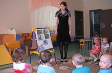 Рассматривание картин в ясельной группе “Птицы - наши пернатые друзья”.