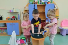 Малыши ясельной группы играли в дидактическую игру "Искупаем куклу Машу".Воспитатель группы Камалутдинова Л.И. в ходе игры активизировала в речи названия предметов, действий, качеств, повторили потешки о воде. Дети учились последовательно выполнять игровые действия в совместной игре со взрослыми. Камалутдинова Л.Н. үзенең нәниләрен "Курчакны юындырабы" дидактик уены белән таныштырды. Уен барышында балалар су турында шигырьләрне искә төшерделәр, олылар белән уртак уенда эзлекле уйнау тәртибе белән таныштылар.