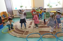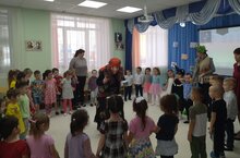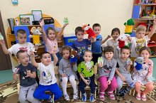 Дети подготовительной группы соревновались в спортивном развлечении вместе с клоунами Прыг-прыг и Скок-скок. Команды сражались упорно и достойно, что в результате победила дружба. Буген мәктәпкә хәзерлек төркемнә йориүче балалар, Прыг-прыг һәм Скок-скок клоуннары белән бергә, бик күңелле ярышларда катнаштылар. Чара барышында балалар үзләренең тырышлыкларын, булганлыкларын күрсәттеләр. Нәтиҗәдә дуслык җиңеп чыкты.