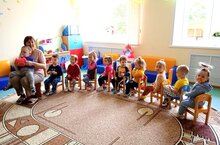 Сегодня в ясельной группе с детьми играли в игру:"Мы едем-едем-едем в далёкие края".С помощью игры формировали первичные представления детей о транспорте.