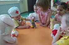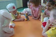 Беренче кечкенәләр төркеме балалары бу атнада Роберт Миңнуллинның "Өрә белүче шкаф", " Туган илнең улы мин" шигырьләре һәм Абдулла Алиш әкиятләре белән таныштылар. Абдулла Алишның "Куян кызы" әкиятен үзләре дә уйнап карадылар. Доктор Айболит куян кызларына: "Аягыгыздан салып йөрмәгез!"- диде.