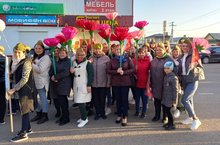 Коллектив детского сада на торжественном мероприятии посвященном 77 летию Победы в Великой Отечественной войне.