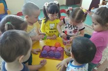 Кинетический песок –необычный материал для творческих игр, учебного и познавательного процессов. Он развивает мелкую моторику, глазомер, чувственное восприятие и креативность, речь, а также прекрасно снимает стресс. Дети первой младшей группы играют в игру «Норка для малышки».