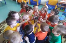 Воспитатель Ахметова Регина Петровна рассказала воспитанникам о сокодвижении на деревьях в весенний период, о вреде, которую причиняют сборщики сока березам, и о том, почему берёзовый сок считается полезным.