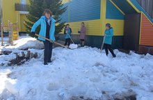 С хорошим задором, весело и дружно все вместе раскидывали снег, собирали мусор, не забывая, при этом, весело шутить и подбадривать друг друга. А погода нас радовала теплым ветром и солнечным небом. Поэтому работа у всех спорилась, и время пролетело незаметно быстро.