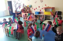 Ребята подготовительной группы вместе с воспитателем Кошкиной Эльмирой Мукминовной познакомились с государственной атрибутикой Российской Федерации и Республики Татарстан и сделали флаги из гофрированной бумаги методом торцевания. Работы получились яркие, сочные, нарядные.