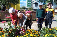 Сегодня ребята из нашего детского сада проходили очередной маршрут экологической тропы. Подготовительная группа собирает лекарственное растение - календулу. Воспитательница Кошкина Ильмира Мукминовна рассказала как собирать, сушить и хранить цветки календулы, какие недуги можно лечить отваром этих цветов.