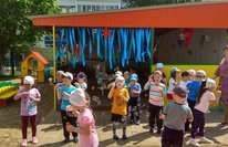 1 нче кечкенәләр төркеменә йөрүче балалар "Күңелле җәй" темасы буенча күмәк эш башкардылар. Үзләре ябыштырып ясаган картина аларга бик ошады. "Җәй матур. Кояш көлә, чәчәкләр үсә, күбәләкләр оча", - диделәр балалар.