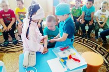 Беренче кечкенәләр төркеменә йөрүче балалар бүген медицина хезмәткәрләре көнен билгеләп үттеләр. Тәрбиячеләре Галимова Лилия Вагизовна аларны табиб һөнәре белән таныштырды. Сәләмәт булу өчен нишләргә кирәклеге турында да сөйләштеләр.