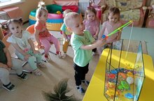 в аквариуме. Малыши не только узнали, как живут рыбки, но и смогли побывать в роли рыбаков и половить маленьких рабок. -