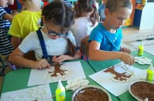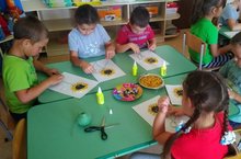 Детская фантазия не знает границ. Сегодня источником нашего вдохновения стали макароны и семечки, из которых получились прекрасные подсолнухи. Ребята с удовольствием и восторгом работали с новым для них материалом для аппликаций.