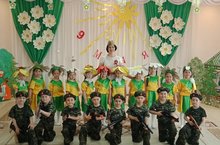 В честь Великой Победы народа в самой долгой, трудной , многочисленной захватнической войне в детском саду прошло мероприятие, целью которого стало напоминание детям, будущим защитникам Родины, о ценности мирного труда и свободной ,спокойной жизни.Пусть поколение 21 века никогда не познает горя и бед, пусть детство будет счастливым, жизнь - полной, а небо - безоблачным! Мы - за мир во всем Мире!