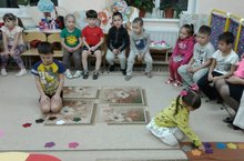 2-3 яшьлек балалар белән конструкторлар ярдәмендә төсләрне тану, әйтү серләренэ тошенәбез. Шул ук вакытта вак моториканы да ныгытабыз.