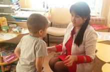 «Бэлэкэч» балалар бакчасында укытучы-логопеднын эшчэнлегендэ авазларны автоматизациялэу торле уен формаларында алып барыла. Ул формаларнын берсе булып,туп остендэ сикеру .Ул баланын хэрэкэтен координациялэугэ , гомуми хэм вак моторикасын устерэ. Э бу уз чиратында куелган авазларны формалаштырырга хэм ирекле аралашырга ярдэм итэ.