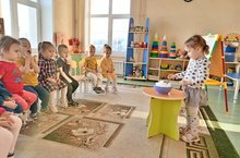 Ежедневное приветствие детей осуществляется с использования слова «Здравствуйте» на трех языках, вечернее прощание «До свидания!»- также.
