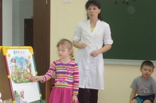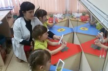 Логопед Мифтахова Алия Азатовна в ходе подгрупповой работы с детьми старшей группы закрепляет навык правильного произношения звука « Р» ,учит определять позицию звука «Р» в словах. Работа с зеркалом способствует укреплению мышц речевого аппарата, а также формирует правильное движение артикуляционных органов.